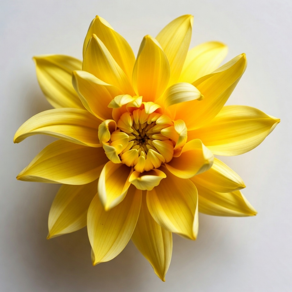bloom, botany, close-up, floral, flower, garden flower, isolated background, nature, orange center, petals, vibrant yellow, white background, yellow flower, yellow petals, dahlia