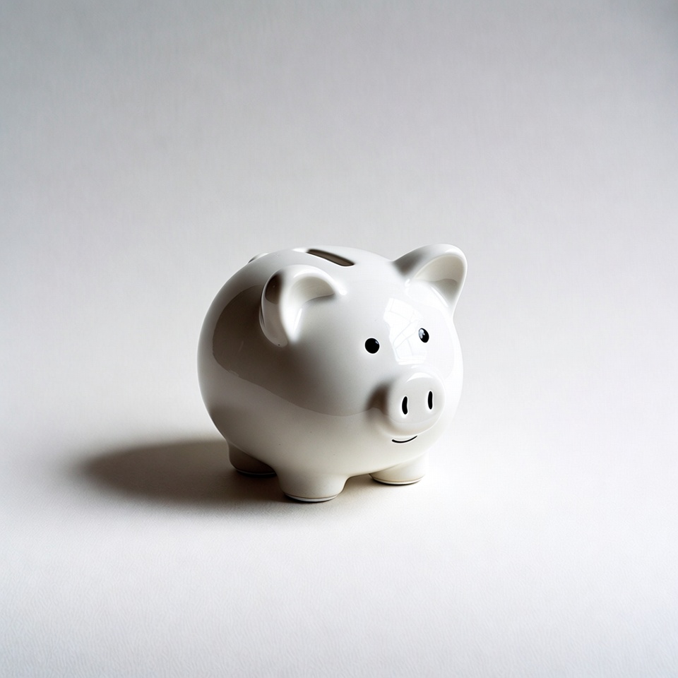 White piggy bank on white background
