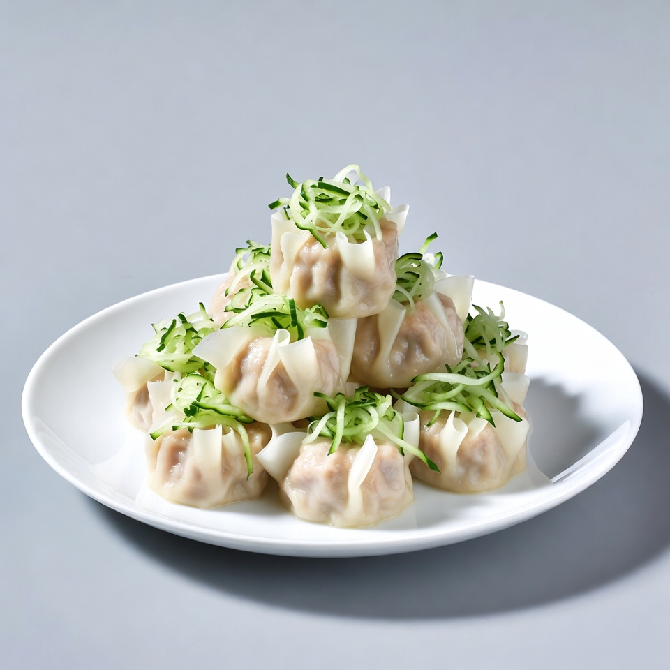 Steamed Dumplings with Zucchini Garnish
