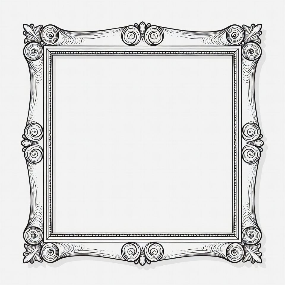 baroque frame, black and white, blank frame, clipart, decorative frame, elegant frame, empty frame, floral design, frame drawing, illustration, isolated background, line art, ornate frame, rectangular frame, scrollwork, sketch, vector art, vintage frame, picture frame