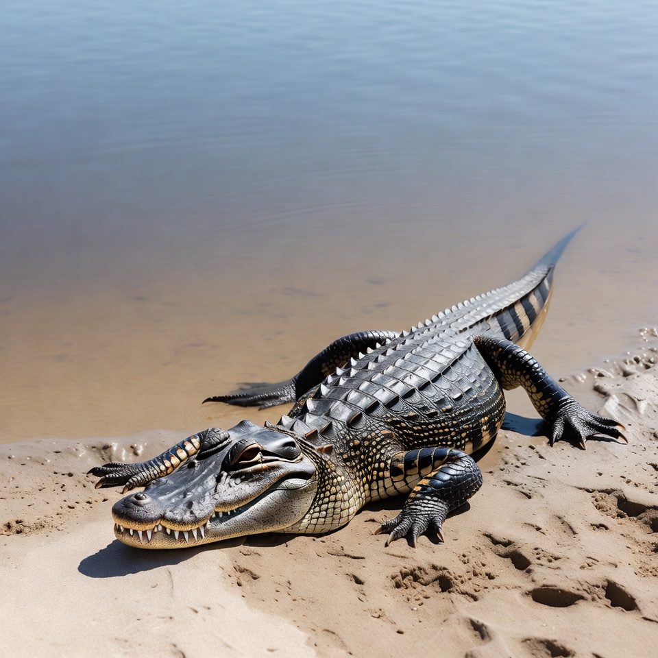 animal, beach, crocodile, jaws, lake, nature, outdoors, predator, reptile, resting, river, sand, scales, shore, swamp, tail, water, wild animal, wildlife, alligator