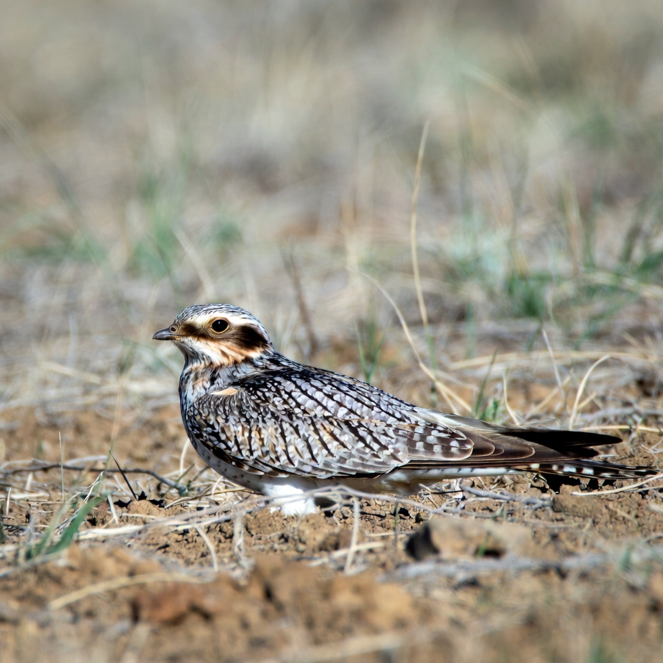 animal, avian, bird, birdwatching, brown bird, common poorwill, dry grass, feathers, gray bird, isolated background, nature, outdoors, soil ground, spotted plumage, wild bird, wildlife, poorwill