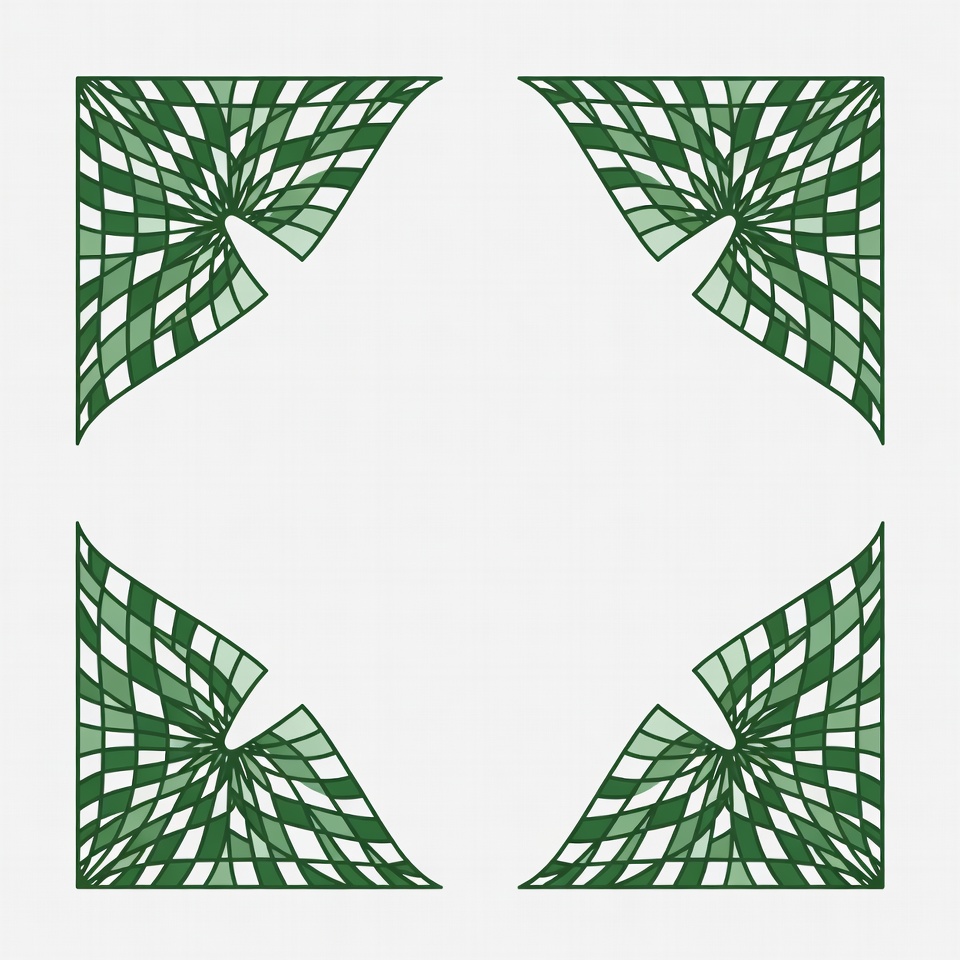 abstract art, clipart, corner frame, decorative border, geometric pattern, green white, illustration, isolated background, mosaic design, symmetrical design, vector graphic, green corners
