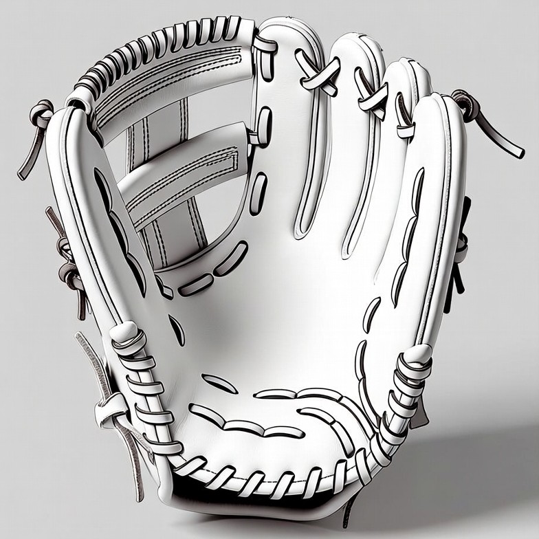 3D render, baseball gear, baseball mitt, black laces, catchers mitt, fielders glove, glove closeup, isolated background, leather glove, sports equipment, stitching, webbing, white glove, baseball glove