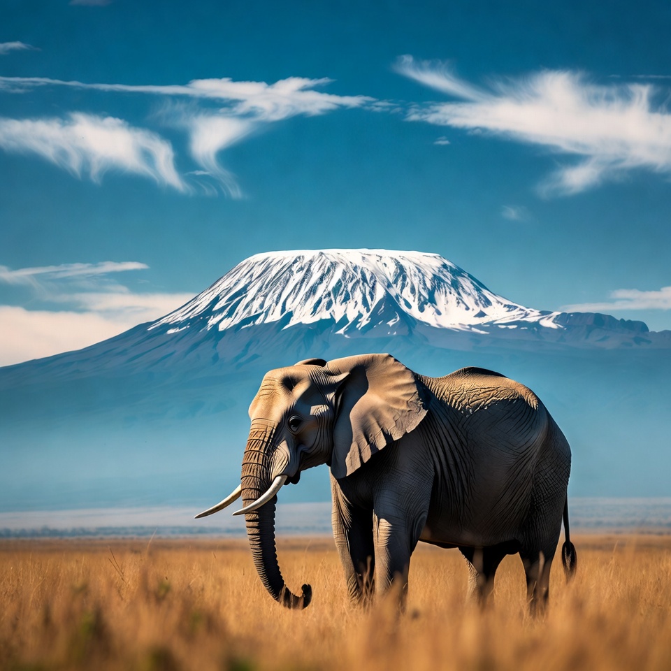 Elephant in front of Mount Kilimanjaro