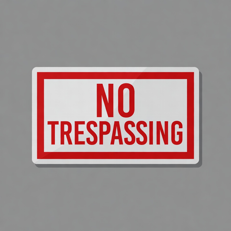 bold text, clipart, illustration, isolated background, prohibition sign, rectangular sign, red border, safety sign, trespassing sign, vector graphic, warning sign, white sign, no trespassing