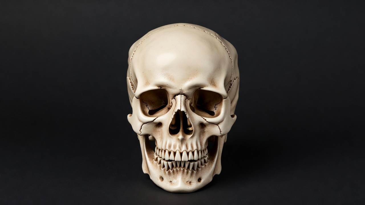 Halloween, anatomy, black background, bone, cranium, death, eye sockets, isolated, jawbone, medical, realistic skull, skeleton, skull, teeth, white skull, human skull