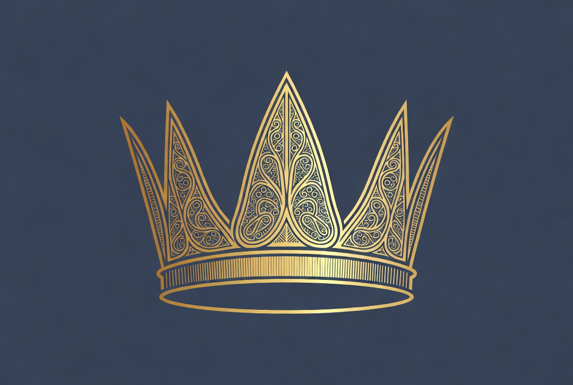 clipart, dark background, emblem, filigree, gold crown, golden crown, illustration, intricate design, isolated background, jewelry, king crown, luxury, metallic gold, monarch, navy blue, ornate crown, queen crown, royal crown, royalty, symbol, vector art, crown