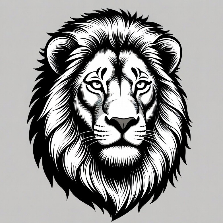 Black and white lion head illustration