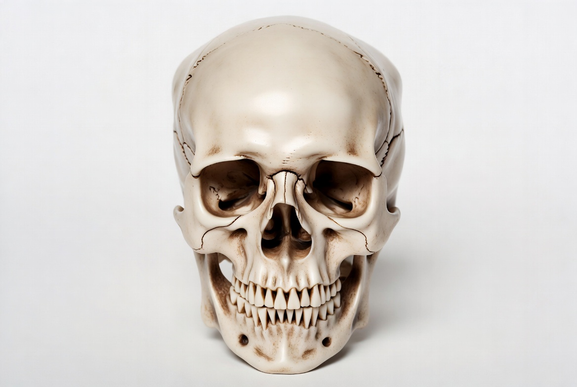 Halloween, anatomy, bone, death, front view, glossy skull, isolated, medical, prop, realistic skull, skeleton, skull, white background, human skull