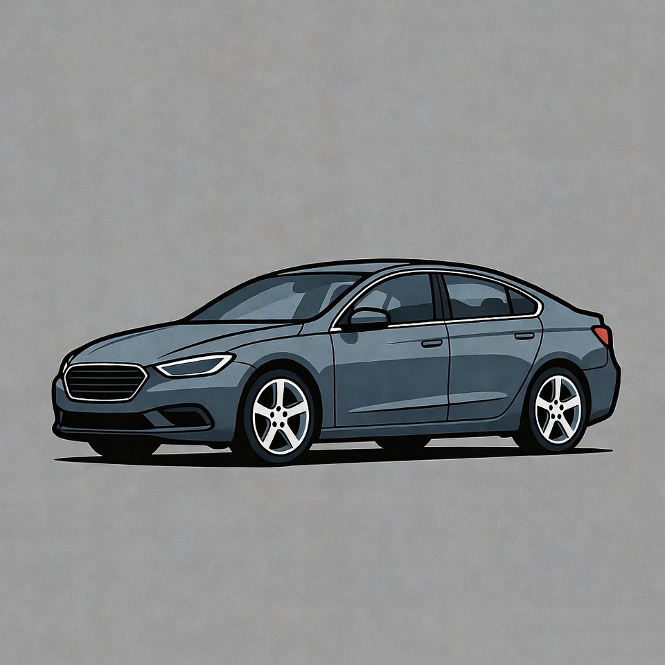 alloy wheels, automobile, clipart, four-door car, gray car, headlights, illustration, isolated background, modern car, sedan, side view, sleek design, vector art, vehicle, car