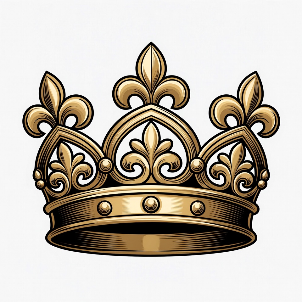 clipart, crown, fleur-de-lis, gold, heraldry, illustration, isolated background, jewelry, king crown, luxury, monarch, ornate crown, queen crown, regal, royal crown, royalty, symbol, vector art, vintage crown, golden crown