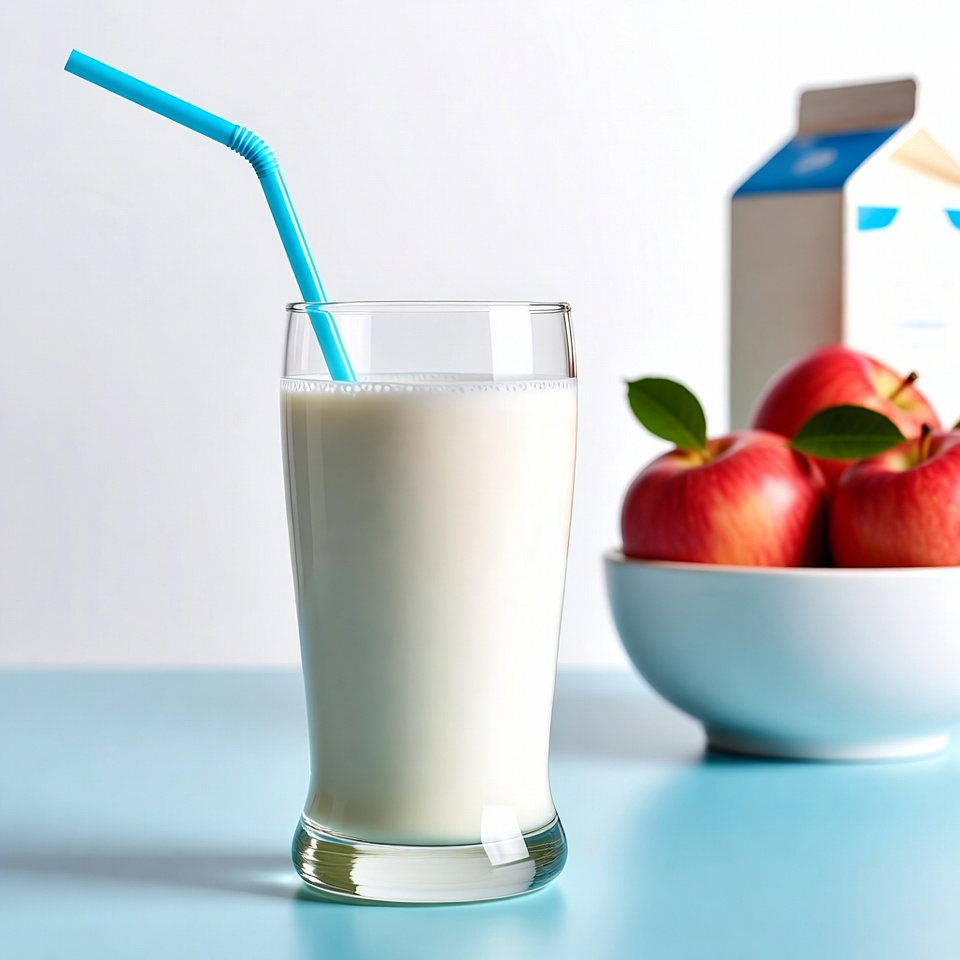 Glass of Milk with Straw and Apples