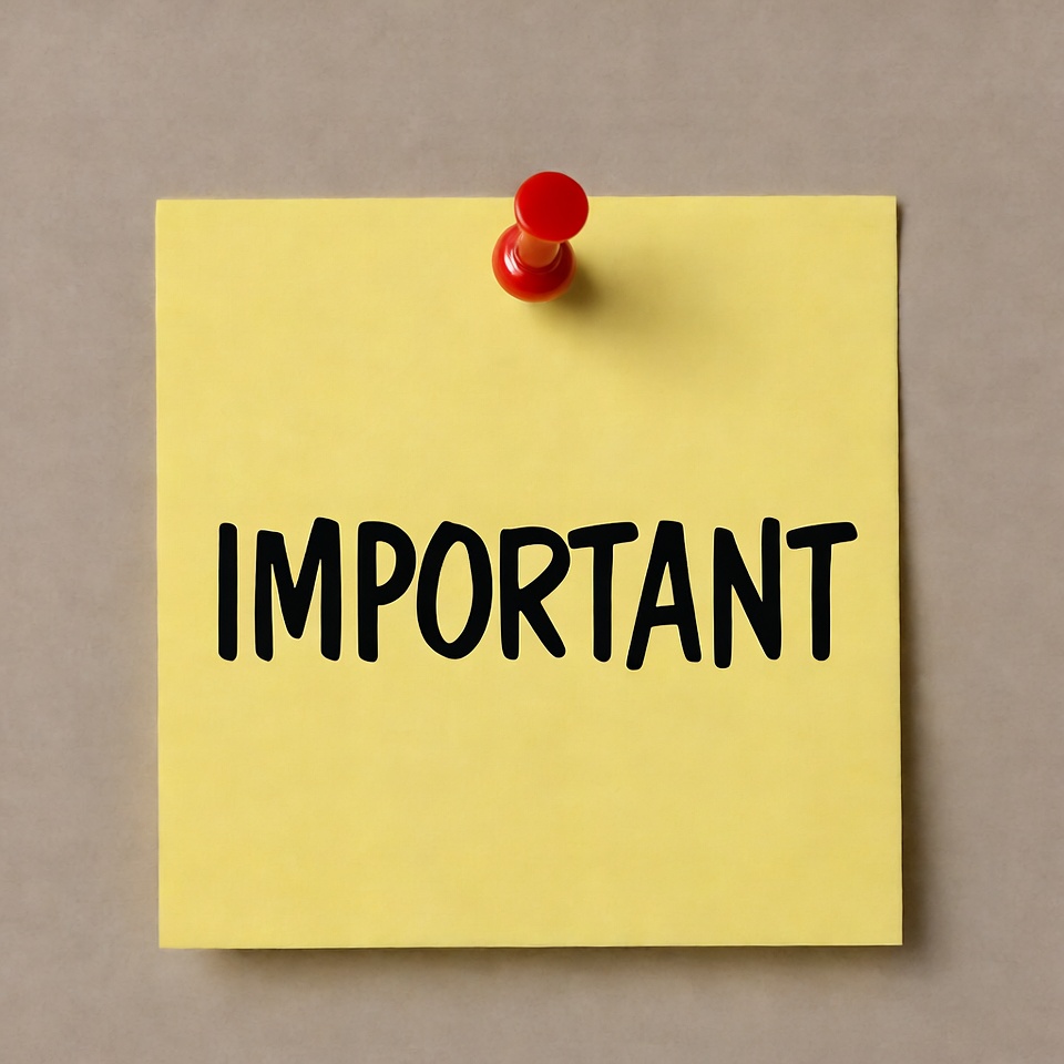 A yellow sticky note with the word 'IMPORTANT' written in bold black letters is pinned with a red pushpin. The note is centered on a plain beige background. The pushpin is attached to the top of the note.