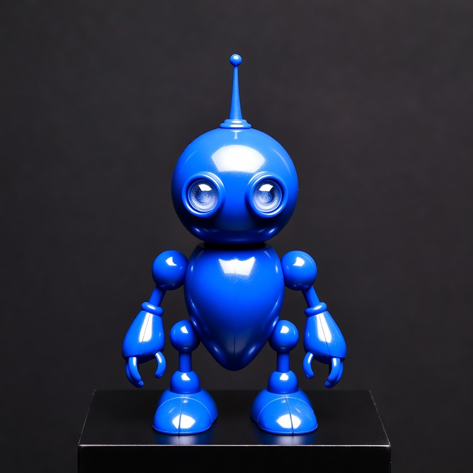 antenna, big eyes, black background, cute robot, figurine, glossy robot, isolated background, plastic robot, robot, robot figure, robot toy, sci-fi robot, shiny blue, standing robot, toy robot, blue robot