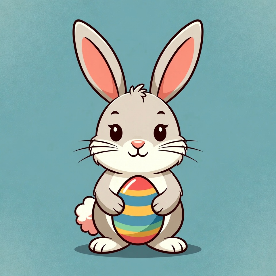 Cute Bunny Holding Easter Egg