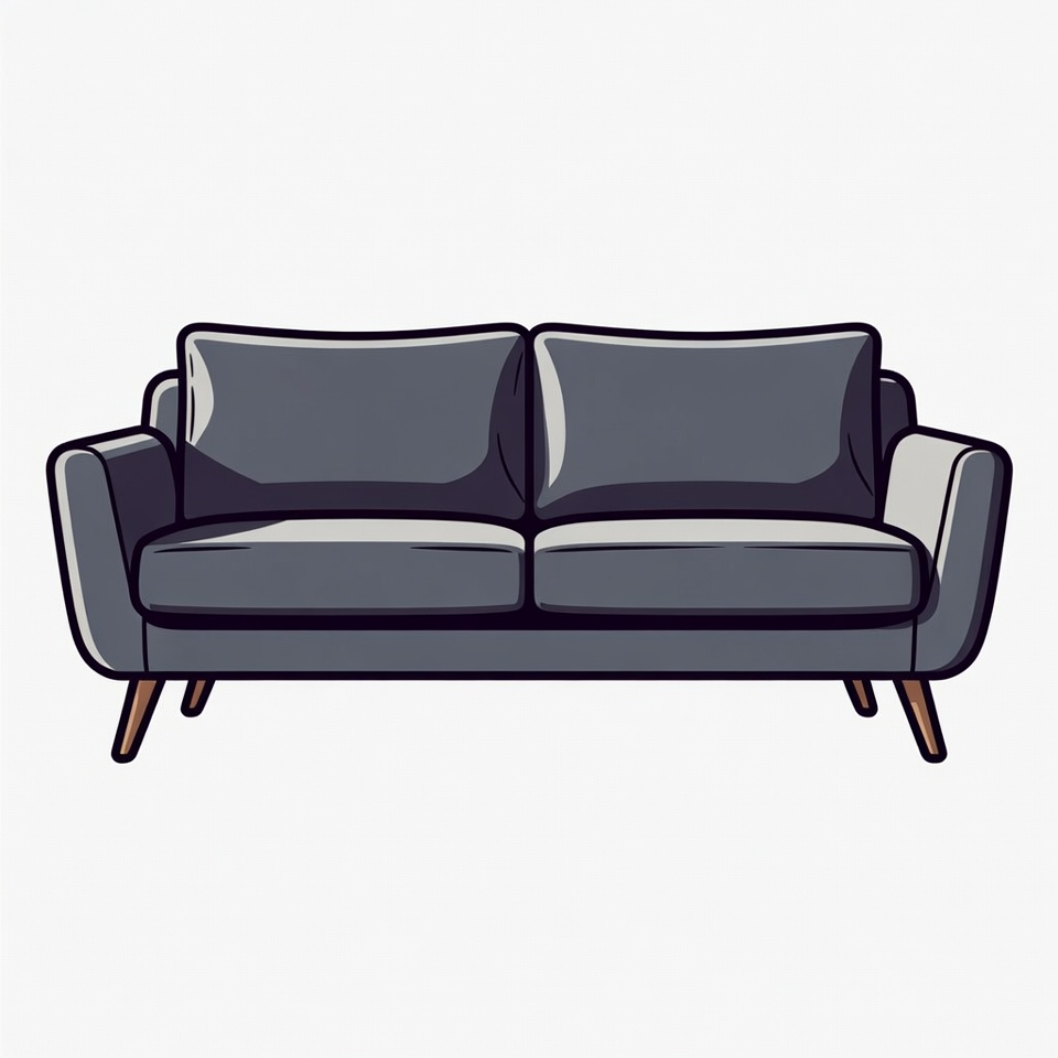 armrests, clipart, contemporary design, couch, furniture, gray sofa, illustration, isolated background, minimalist, modern sofa, plush cushions, two-seater, vector art, wooden legs, sofa