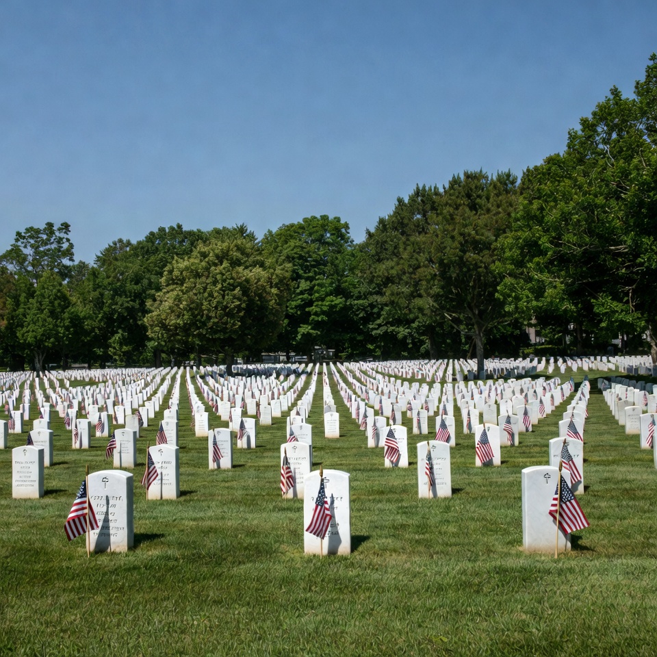 American flags, Arlington cemetery, Memorial Day, blue sky, flag cemetery, flags on graves, grass field, gravestones, green grass, memorial site, military cemetery, outdoor cemetery, patriotic flags, remembrance day, row of graves, sunny day, trees, veterans graves, white headstones, cemetery