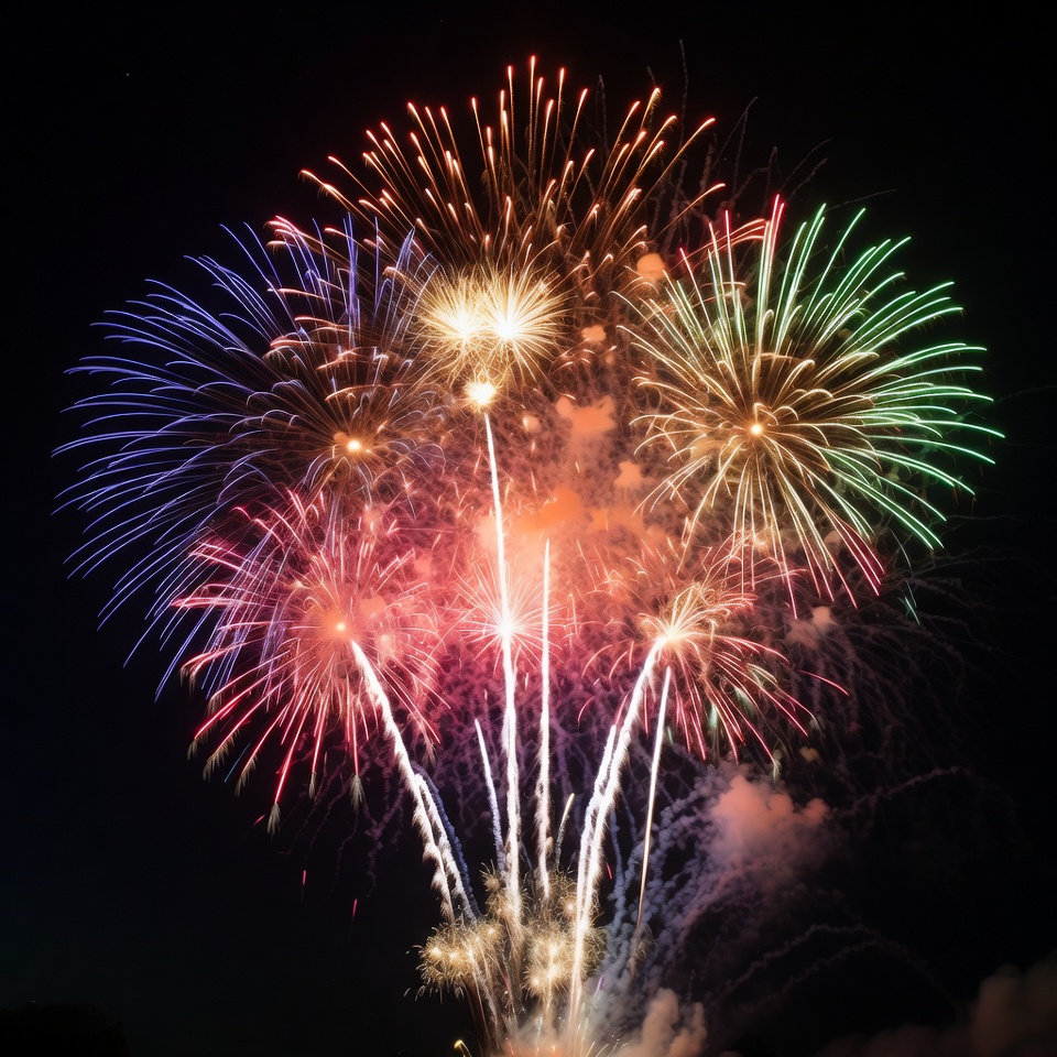 Colorful Fireworks Exploding in Night Sky