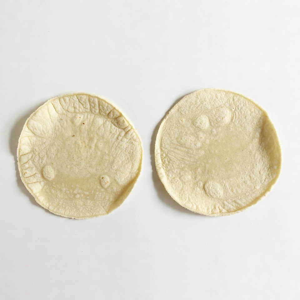 Two Corn Tortillas on White Background