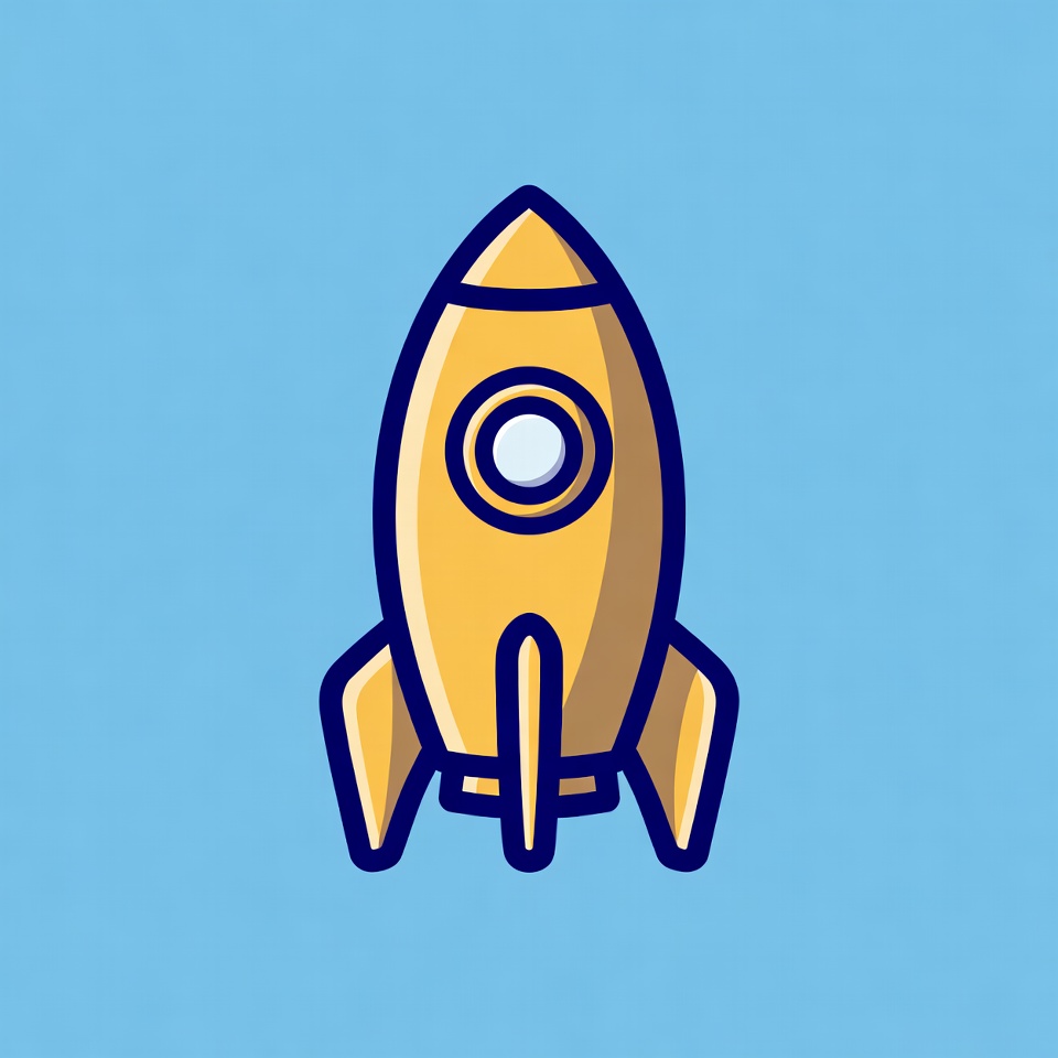 blue background, cartoon, clipart, fins, icon, illustration, isolated background, launch, nose cone, simple, space, spaceship, vector, window, yellow rocket, rocket
