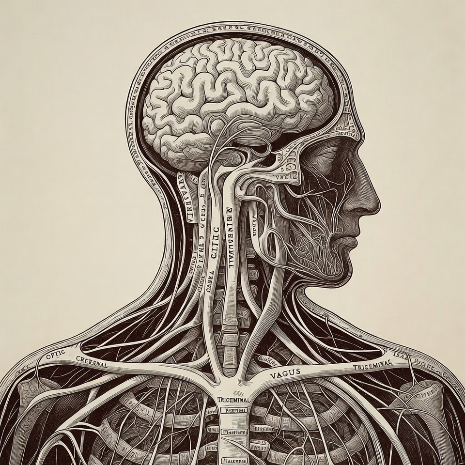 Anatomical Man Head Brain Nerves Illustration