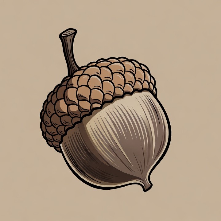 Illustrated Acorn on Beige Background