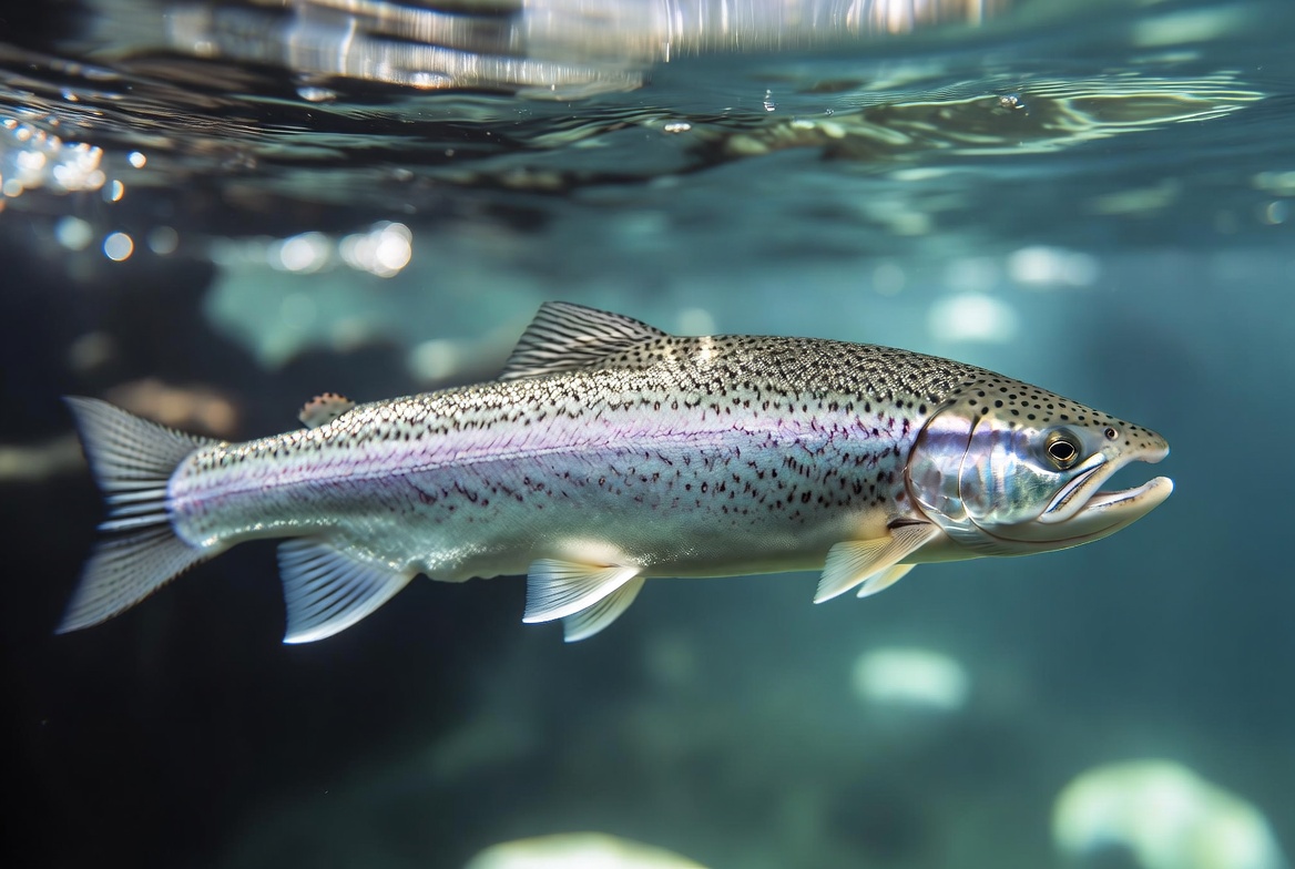 aquarium fish, aquatic animal, blue water, clear water, fish, fish fins, fish scales, fish tail, freshwater fish, pink stripes, silver fish, spotted fish, swimming fish, trout, trout fish, underwater, rainbow trout