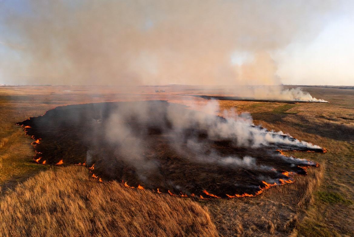 aerial view, blackened earth, burning field, bushfire, controlled burn, drone photo, dry grass, field fire, fire circle, fire scar, flames, grass fire, grassland blaze, grassland fire, landscape, nature, orange flames, prairie, rural fire, smoke, smoky field, steppe, white smoke, wildfire, wildfire aerial