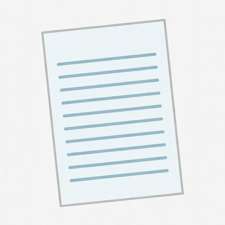A simple illustration of a white rectangular sheet of paper with evenly spaced horizontal blue lines. The paper has a subtle gray outline and appears on a transparent background. It resembles a blank notepad page ready for writing.