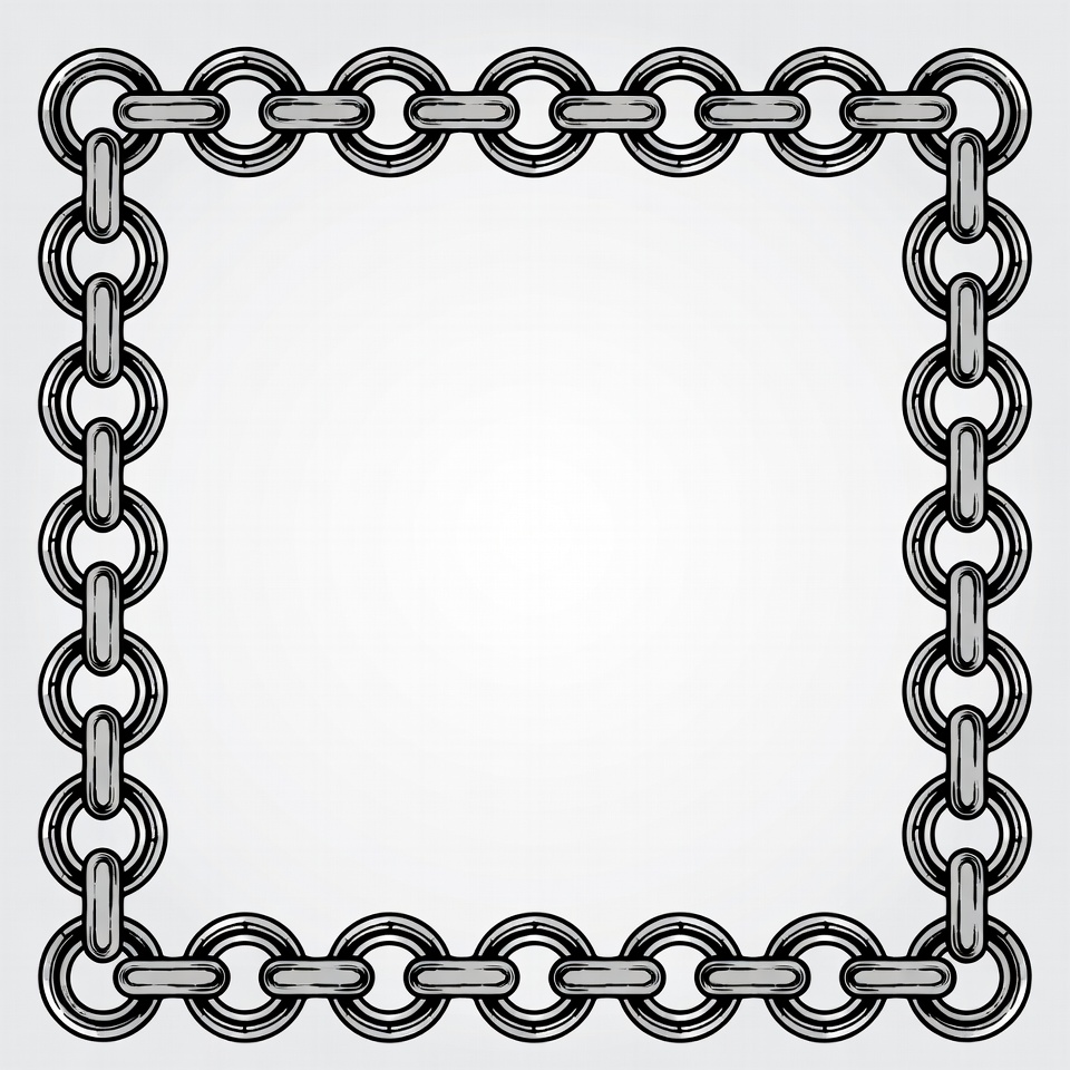 border graphic, chain design, chain link, clipart, decorative border, gray chains, illustration, interlocking chains, isolated background, metal frame, metallic chains, silver chains, square frame, vector frame, chain border