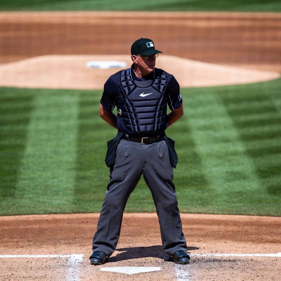 Baseball umpire standing behind home plate