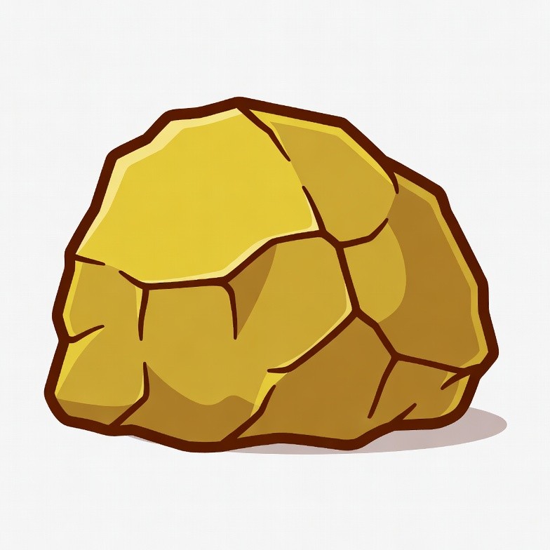 A simple yellow rock illustration with a thick brown outline. It features jagged, irregular surfaces and sits on a white background. The clipart style is bold and cartoonish.