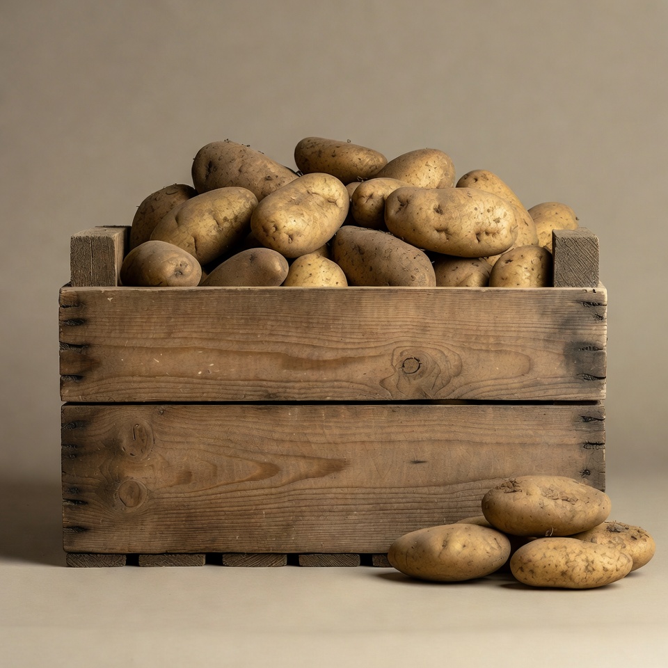 Potatoes in wooden crate