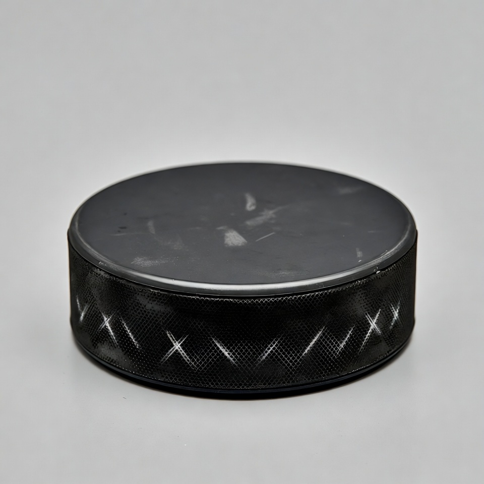 NHL puck, black equipment, black puck, equipment, field hockey, hockey, ice hockey, isolated background, puck, round puck, rubber puck, sports equipment, sports gear, textured puck, hockey puck