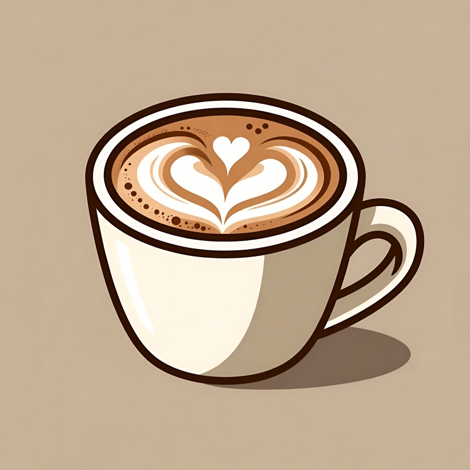 barista art, beverage, cappuccino, ceramic mug, clipart, coffee, drink, foam art, heart shape, hot drink, illustration, isolated background, latte art, white cup, latte