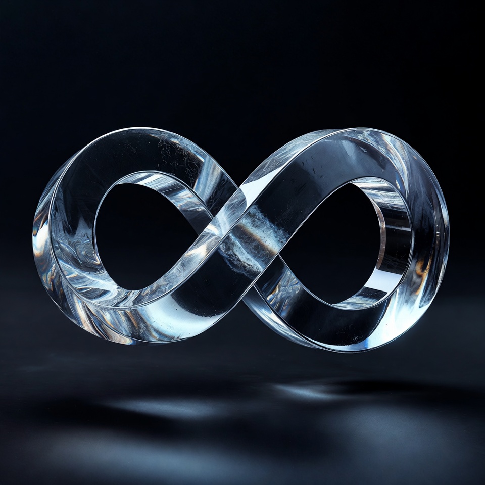 3D, cg, clear, crystal, dark background, eternal, floating, glass, infinity, isolated, loop, mathematics, reflective, render, shiny, symbol, transparent, infinity symbol