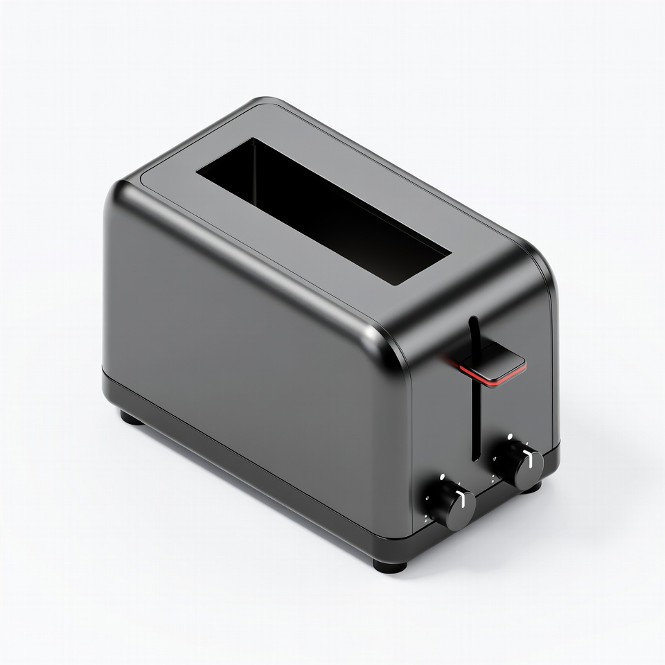 3D render, appliance, black toaster, bread toaster, cooking tool, home appliance, isolated background, kitchen appliance, modern toaster, two slice toaster, toaster