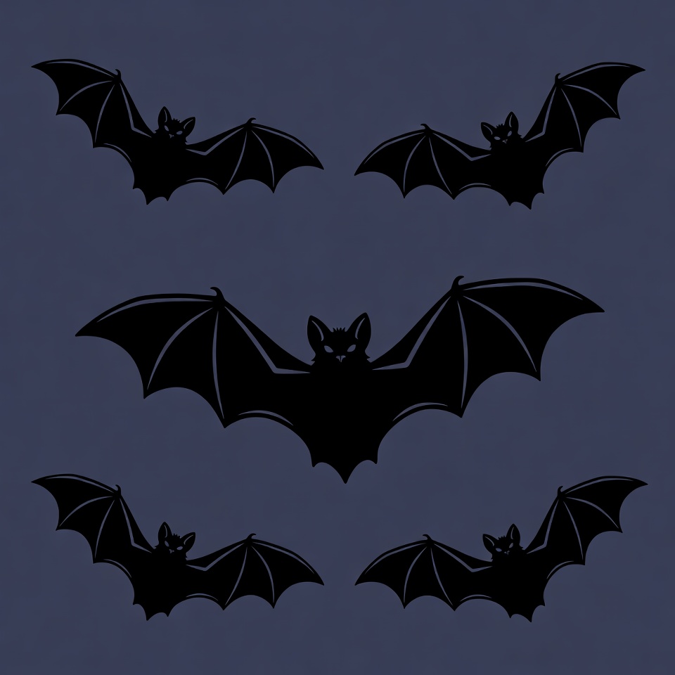 Halloween bats, bat clipart, bat illustration, bat wings, black bats, cartoon bats, dark background, flying bats, illustration, isolated background, multiple bats, silhouette bats, spooky bats, vector bats, bats