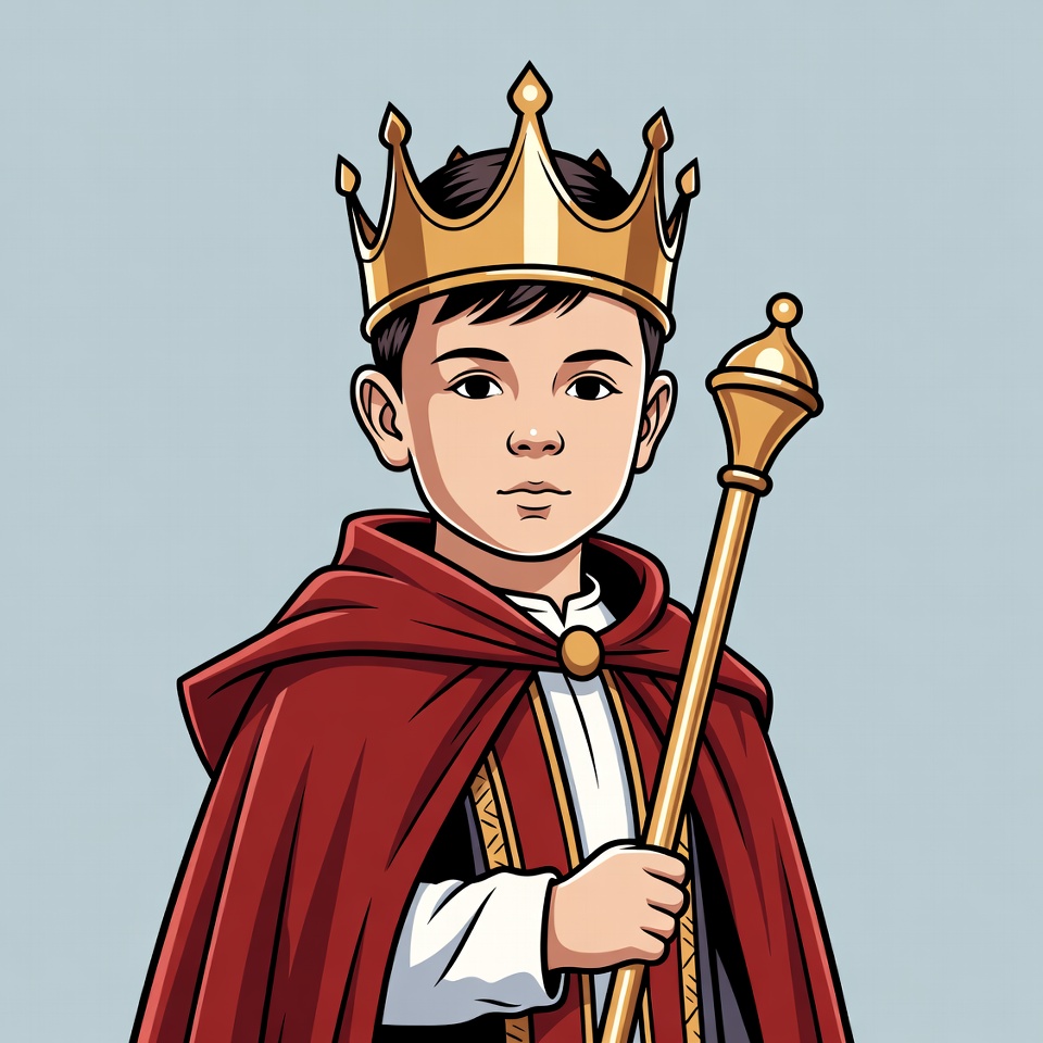 Young boy king with crown and scepter