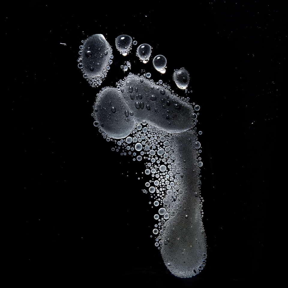 arch, black background, bubbles, closeup, foot print, glossy, heel, isolated, macro, soap bubbles, toes, translucent, water, water droplets, wet, wet footprint, footprint