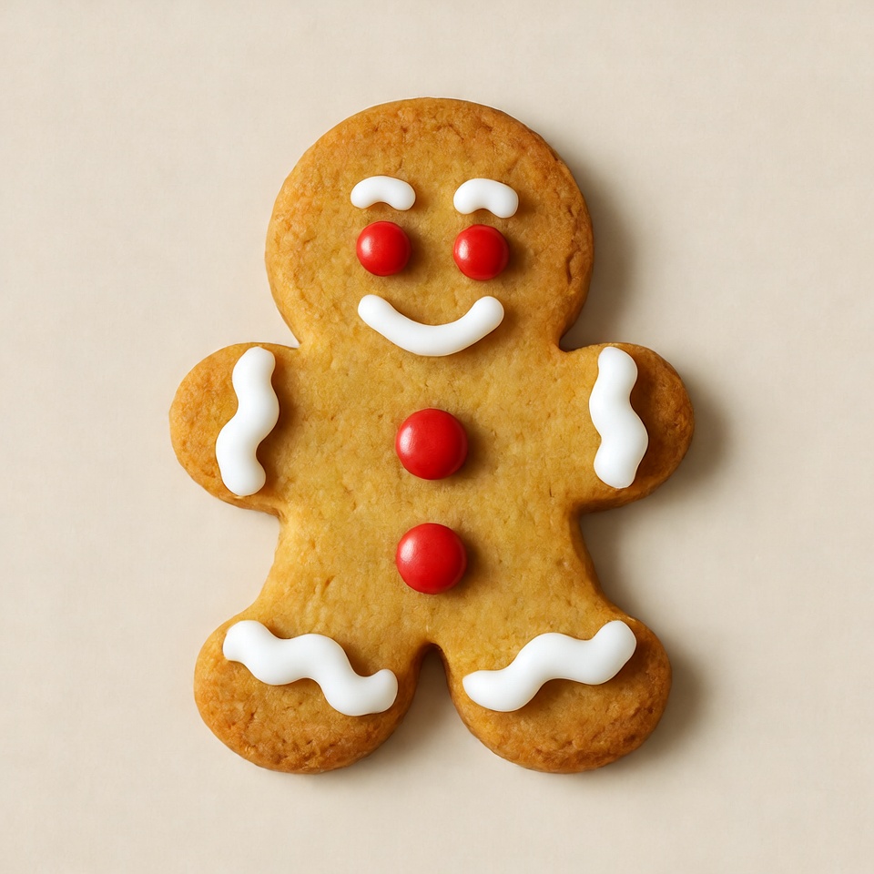 Smiling gingerbread man cookie