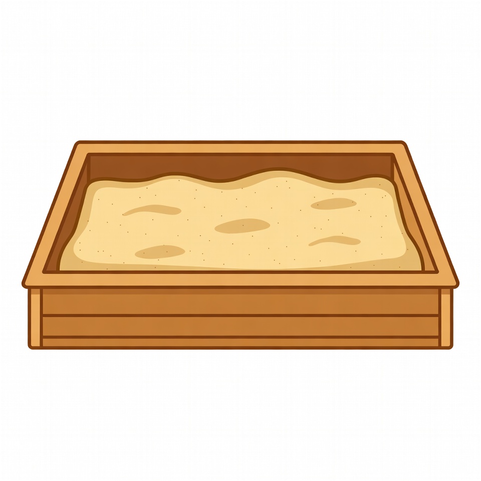 beach sand, cartoon, clipart, illustration, isolated background, kids toy, outdoor play, play sand, playground, sand, wood frame, wooden sandbox, sandbox