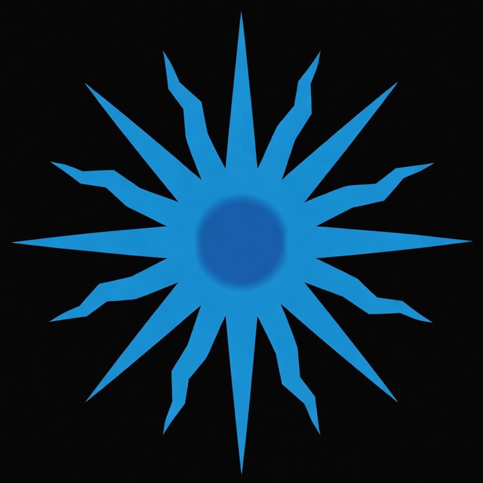 A vibrant blue starburst with sharp, jagged rays radiates from a glowing central core. The design features a gradient blue center fading outward against a solid black background. It appears as a simple vector illustration or clipart.