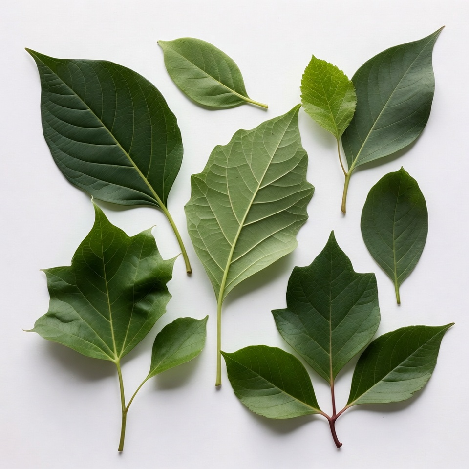 Assortment of Green Leaves on White