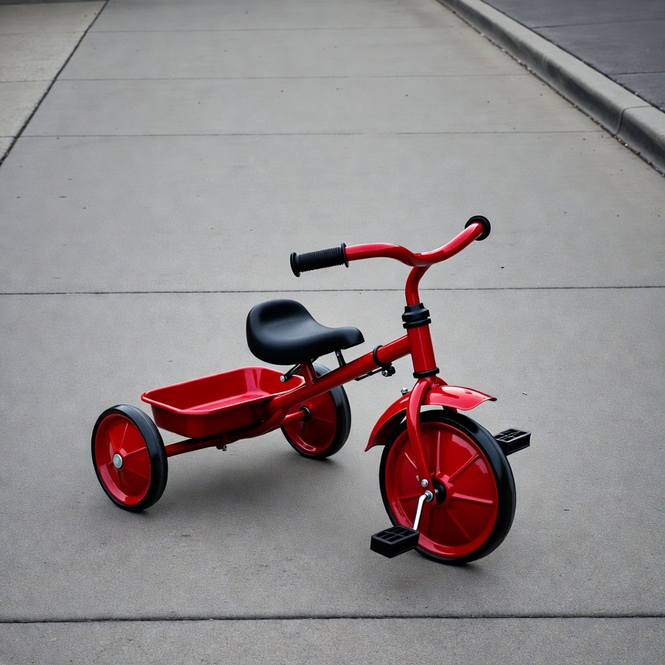 Red Tricycle on Concrete Sidewalk