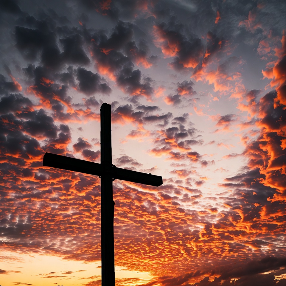 Silhouette Cross at Sunset Sky