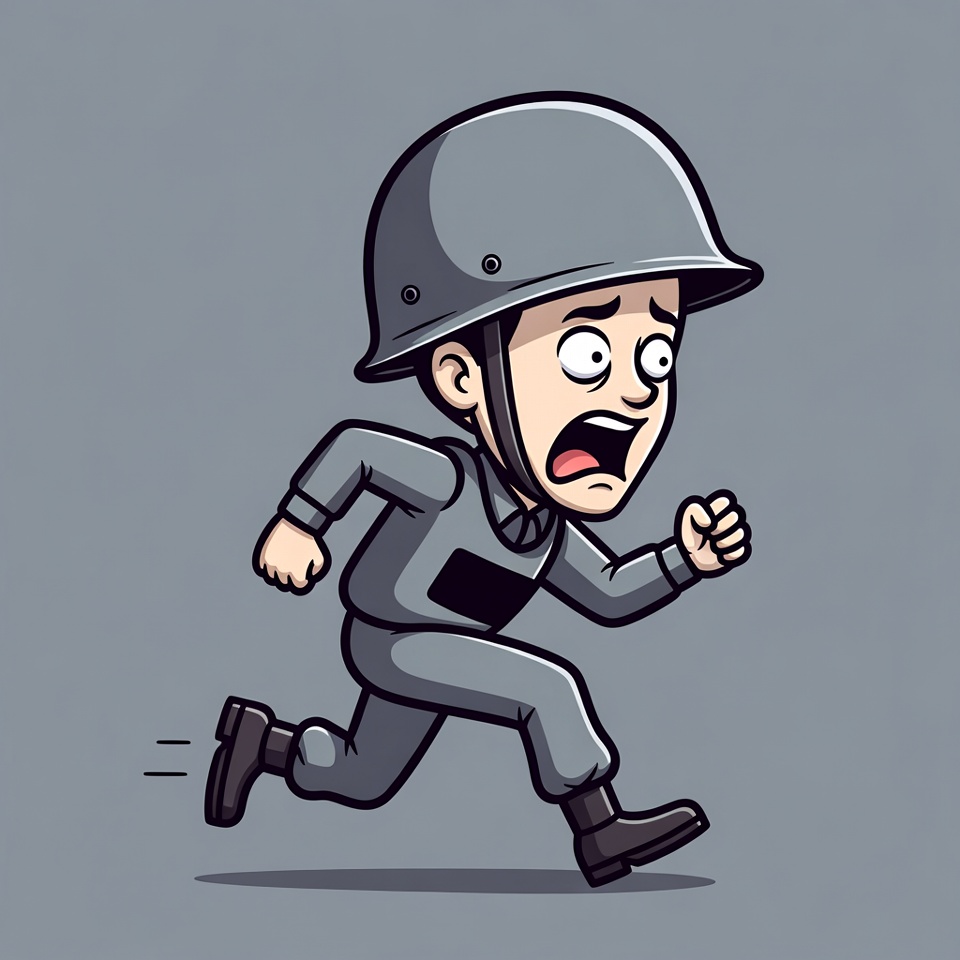 Cartoon Soldier Running Scared