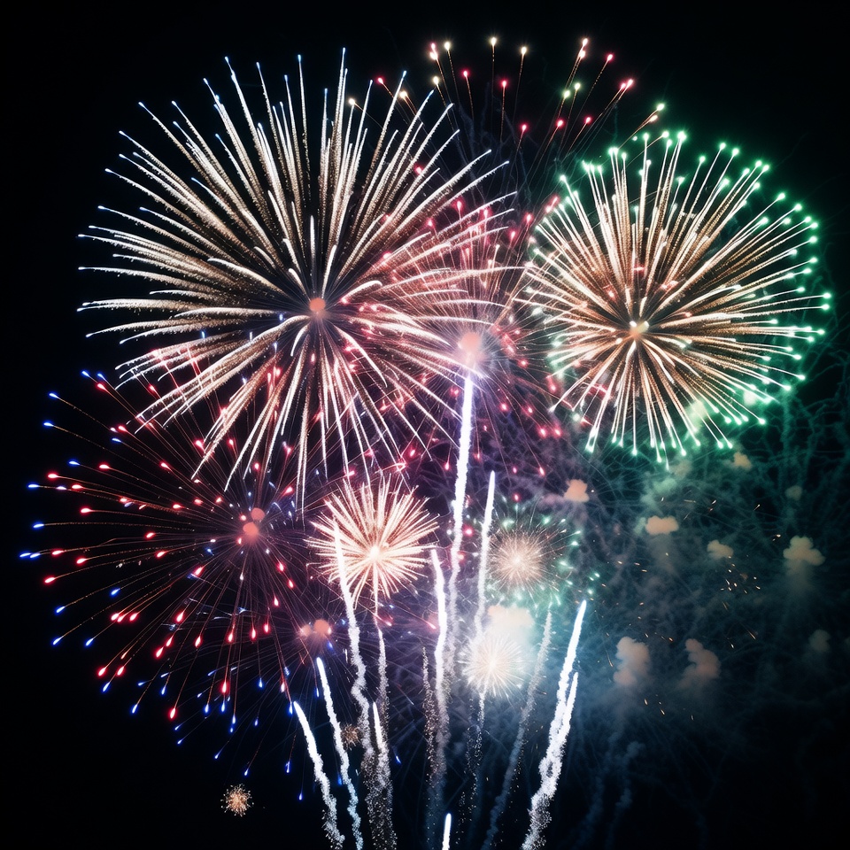 Colorful Fireworks Exploding in Night Sky