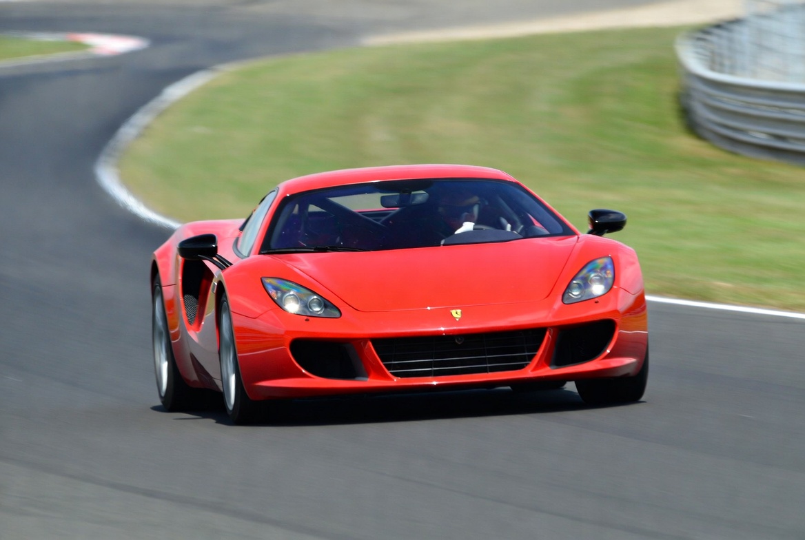 Red Ferrari racing on track